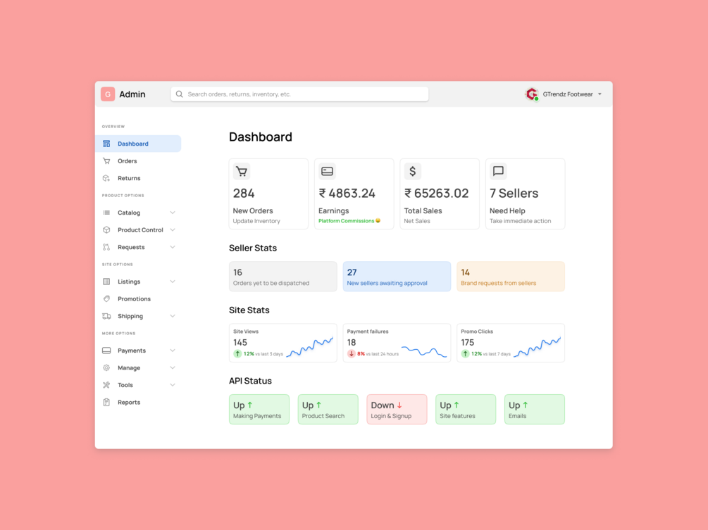 - Perfect for both seller and admin control panels